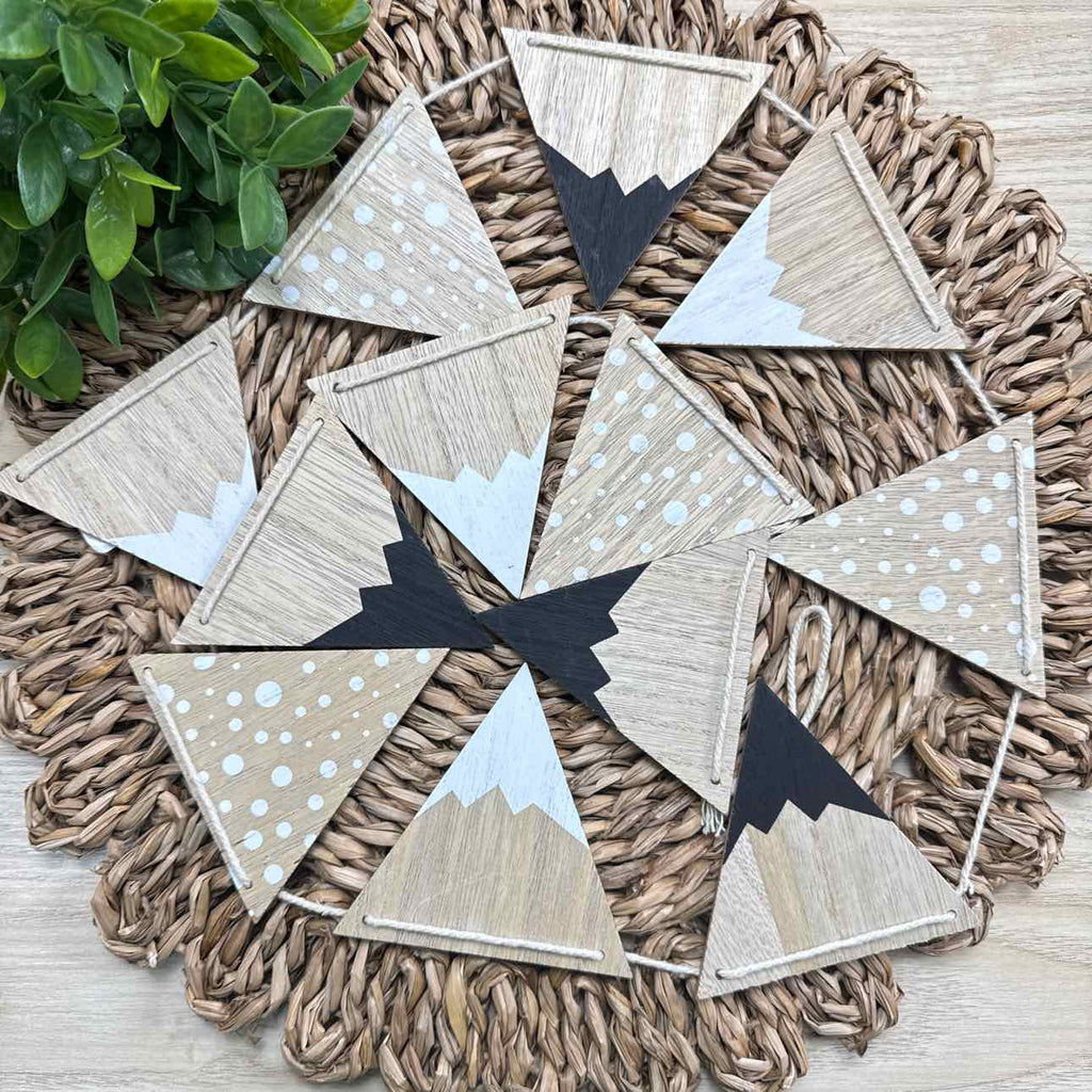 MOUNTAIN PEAK WOODEN FLAG BANNER