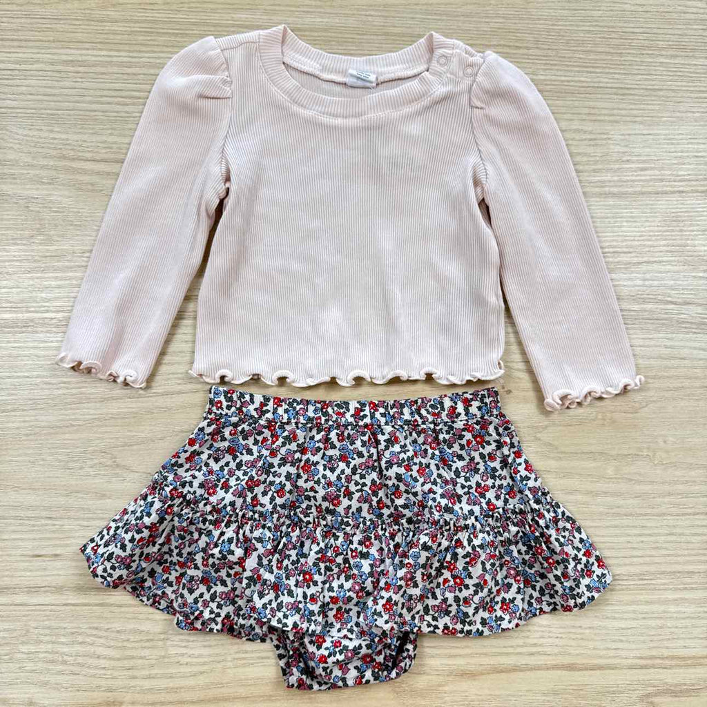 FLORAL RIBBED SKIRT